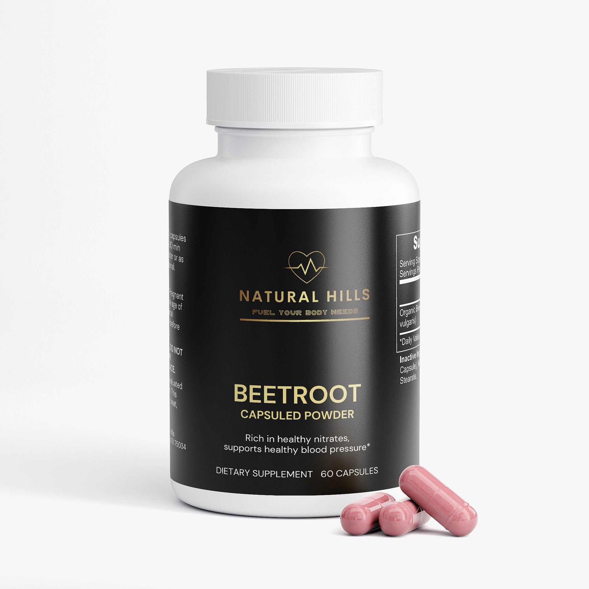Ingredients: Organic Beetroot Powder (beta vulgaris), Cellulose (Vegetable Capsule), Microcrystalline Cellulose, Magnesium Stearate.