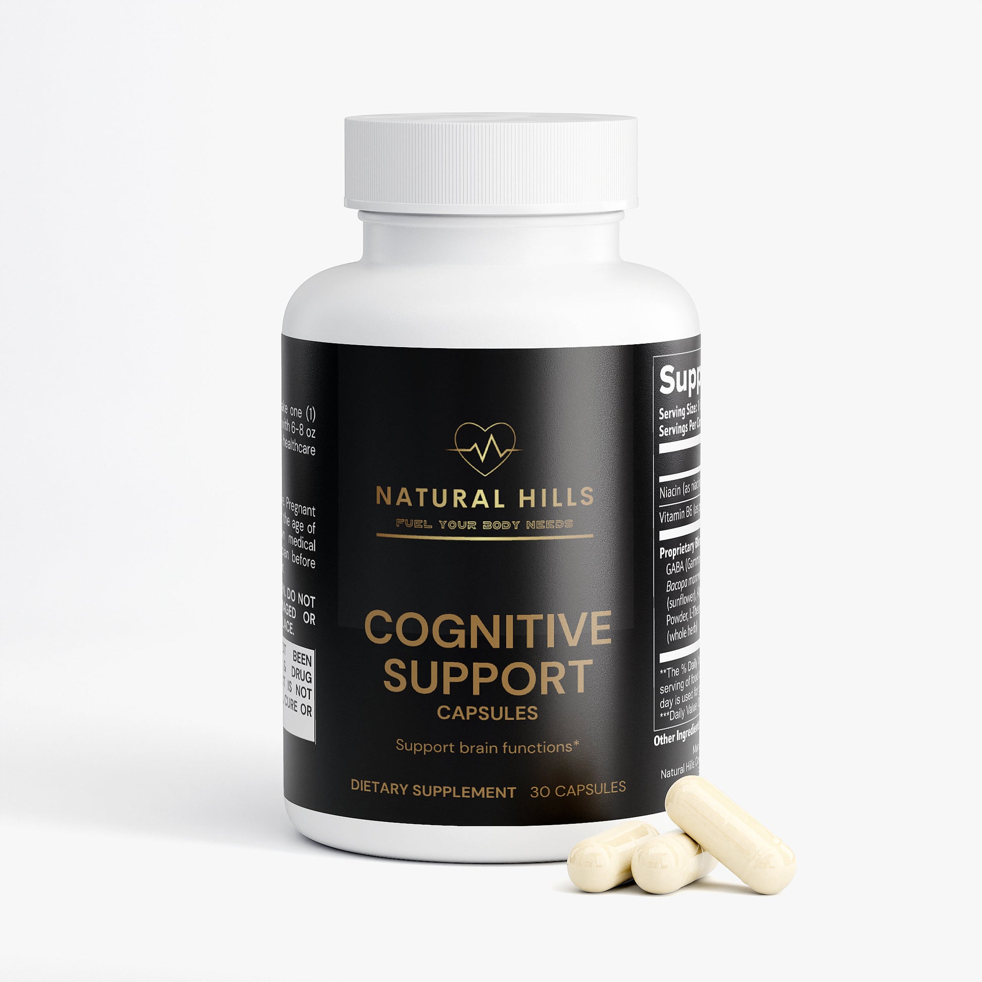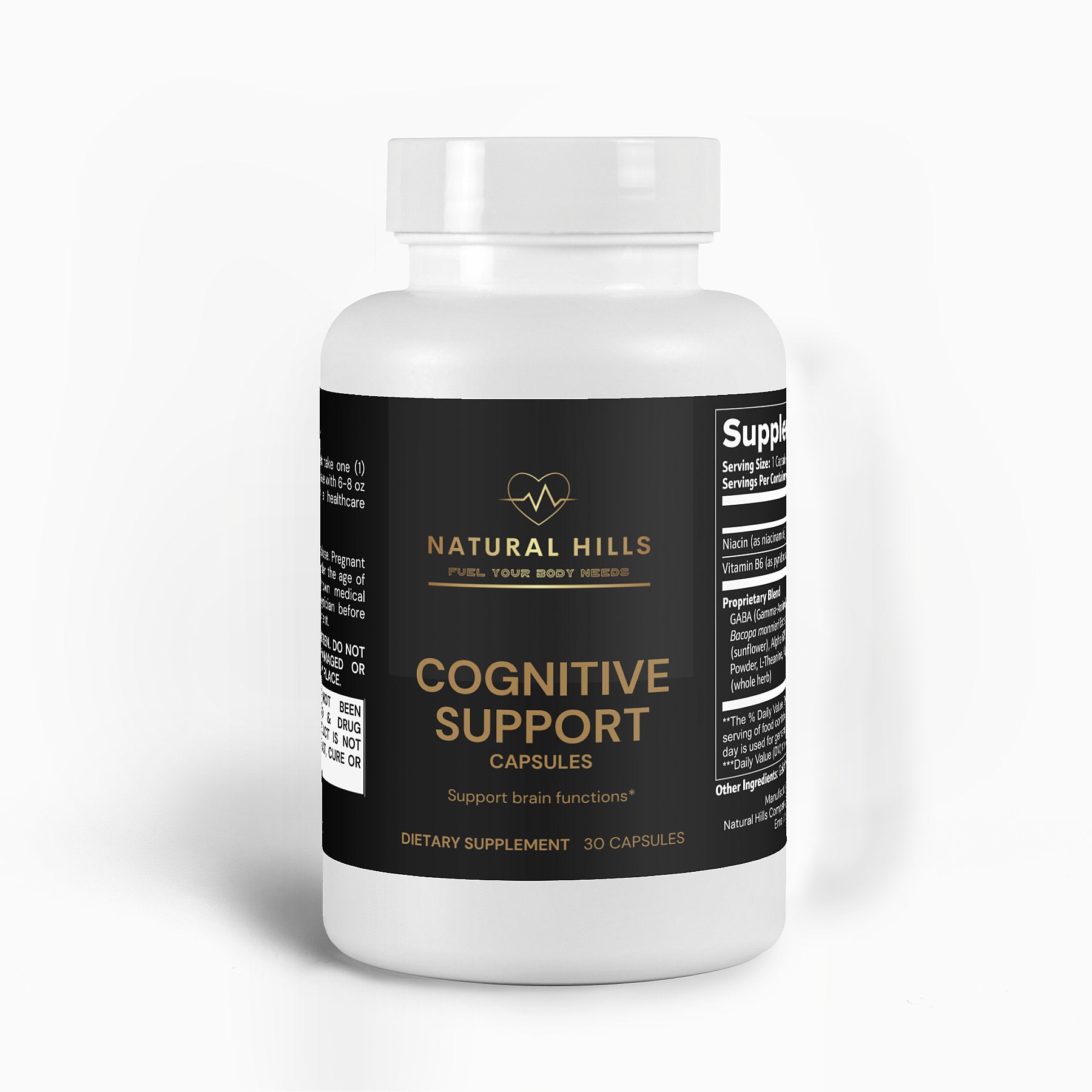This cognitive enhancement supplement is designed to support brain functions through a blend of natural compounds. It combines Niacin, Vitamin B6, GABA, L-Tyrosine, and other key ingredients like Bacopa monnieri and Huperzine A, aimed at promoting mental clarity, focus, and cognitive performance. Ideal for daily use, this supplement is dedicated to supporting your brain's health and enhancing cognitive functions using high-quality, natural ingredients, without artificial additives.*