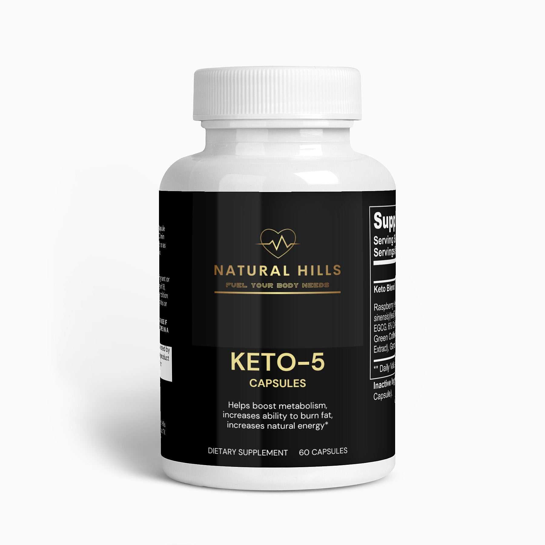 Ingredients: Keto Blend (Raspberry Ketone, Green Tea, Caffeine Anhydrous, Green Coffee Bean, Garcinia Cambogia (fruit), Cellulose (Vegetable Capsule).