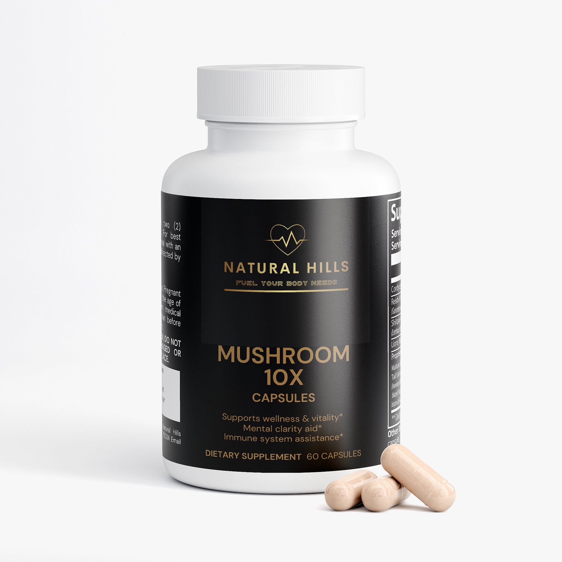 Ingredients: Cordyceps Sinensis Powder, Reishi Mushroom Extract, Shiitake Mushroom Extract, Lions Mane, Proprietary Blend (Maitake Mushroom Extract, Turkey Tail Extract, Chaga Mushroom Extract, Royal Sun Agaricus Extract, White Button Mushroom Extract, Black Fungus Extract, Hypromellose (vegetable capsule), Microcrystalline Cellulose, Magnesium Stearate.